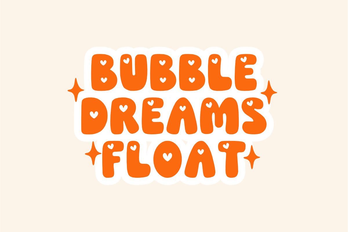 Little Bubble is a cute and chunky bubble font with playful curves and heart-shaped details inside each letter. This font is perfect for children’s projects, Valentine’s cards, playful branding, baby shower invitations, and any design that needs a fun and adorable touch. Its bold and bubbly look brings joy and charm, making it ideal for social media graphics, stickers, t-shirts, and more. Let your creativity pop with Little Bubble!